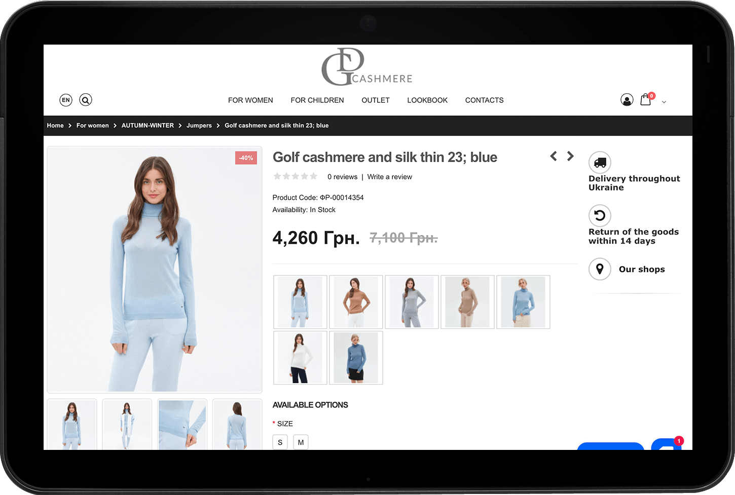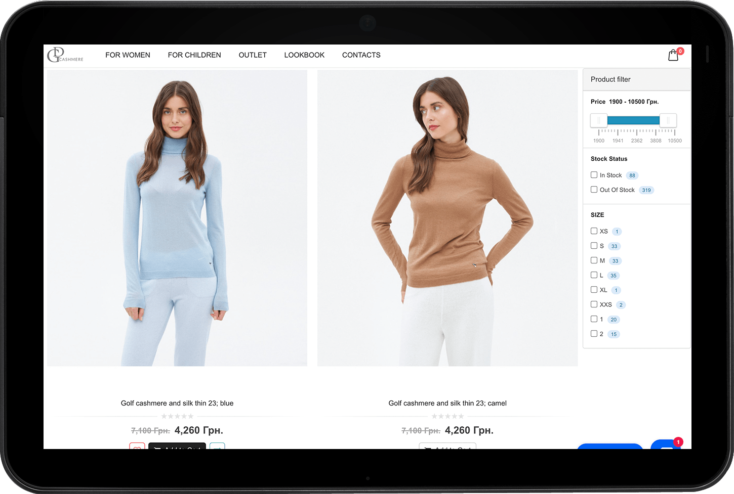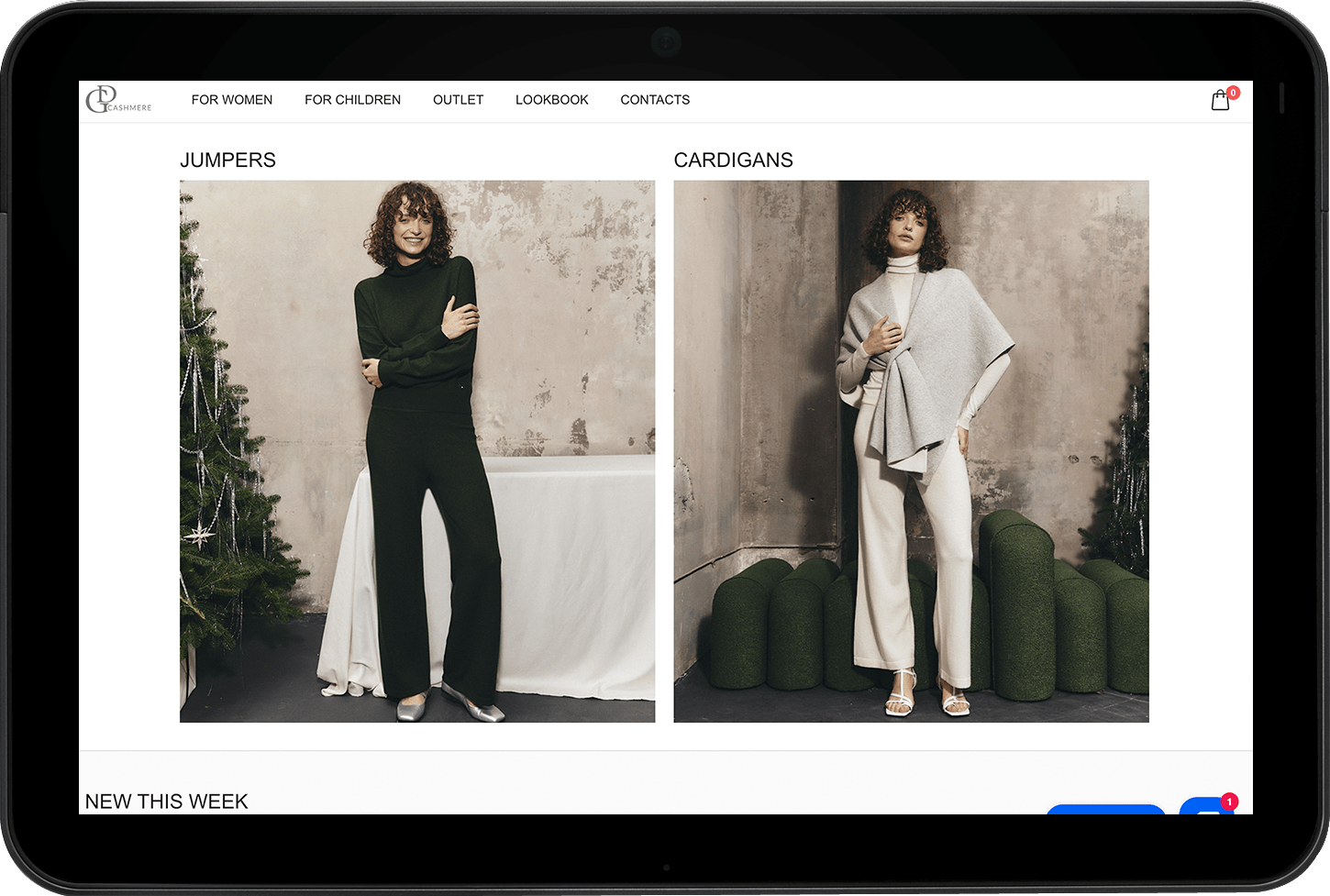 The customer was tasked with creating an online store of GD CASHMERE cashmere knitwear that meets clear design and corporate style requirements. Every visual moment is agreed and approved by the customer. One of the key tasks was the introduction of synchronization with 1C and the implementation on the website of a lookbook - a visual catalog presenting the main models of the collection of accessories and clothing.