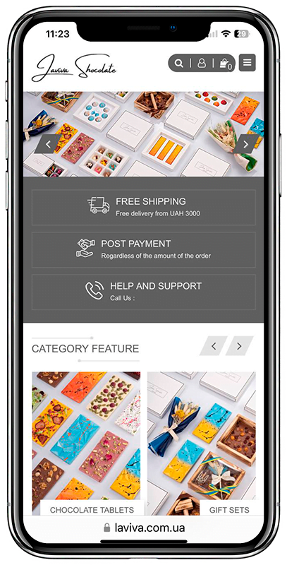 The client was tasked with creating a simple, concise Laviva chocolate online store that meets clear design and corporate style requirements. Every visual moment is agreed and approved by the customer.