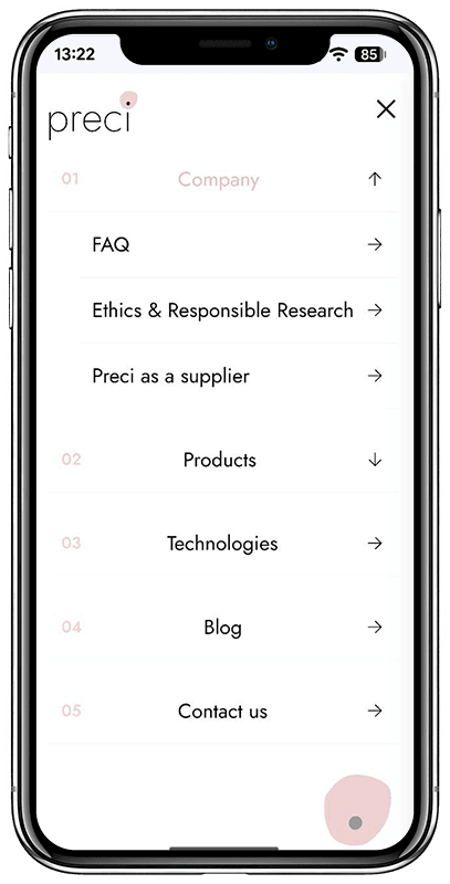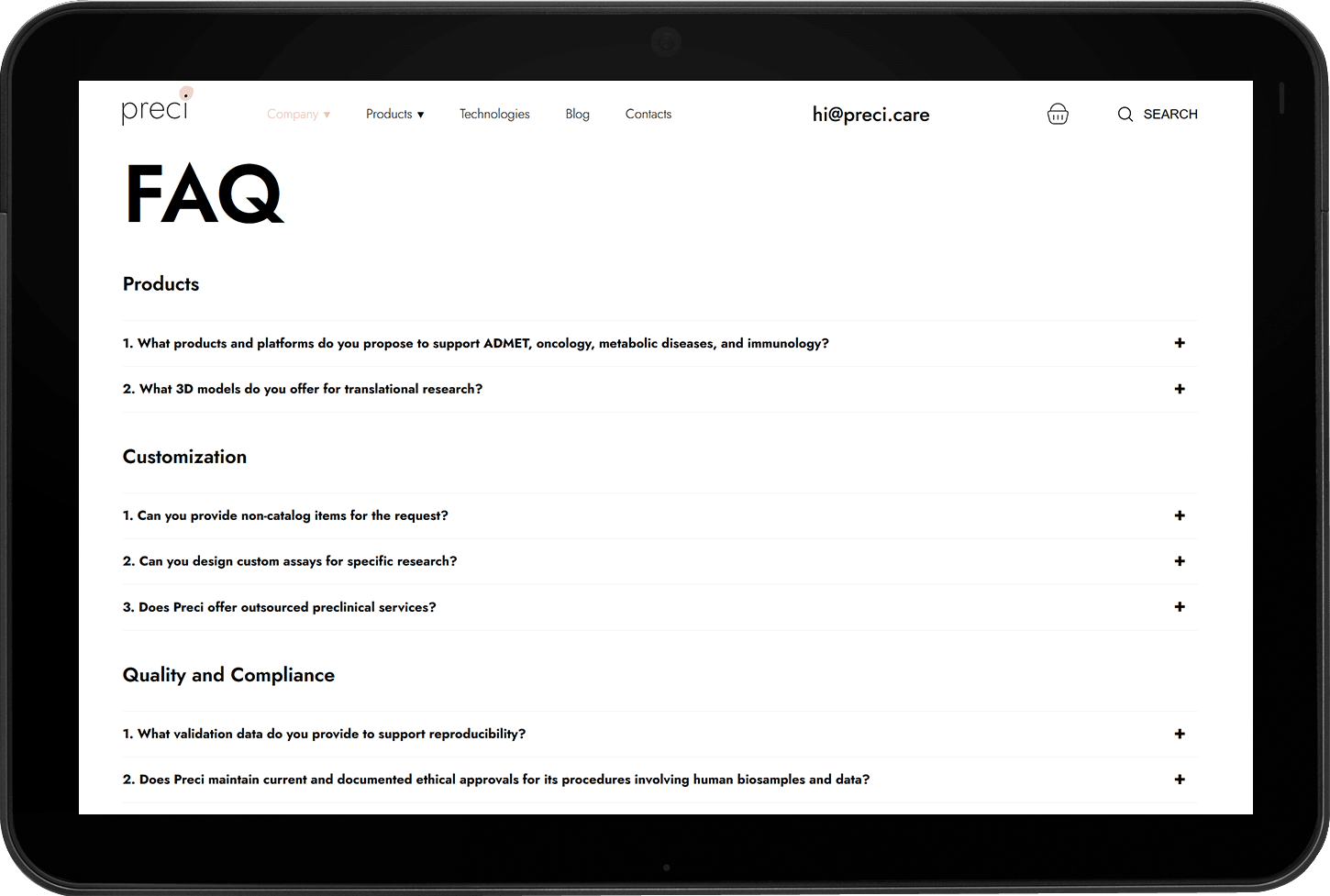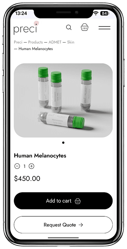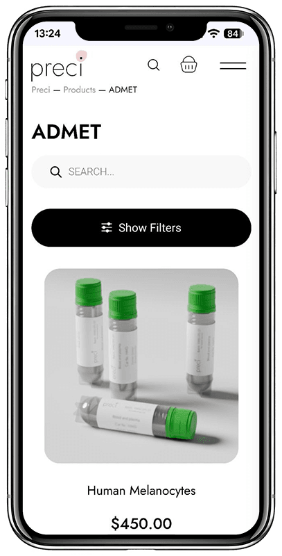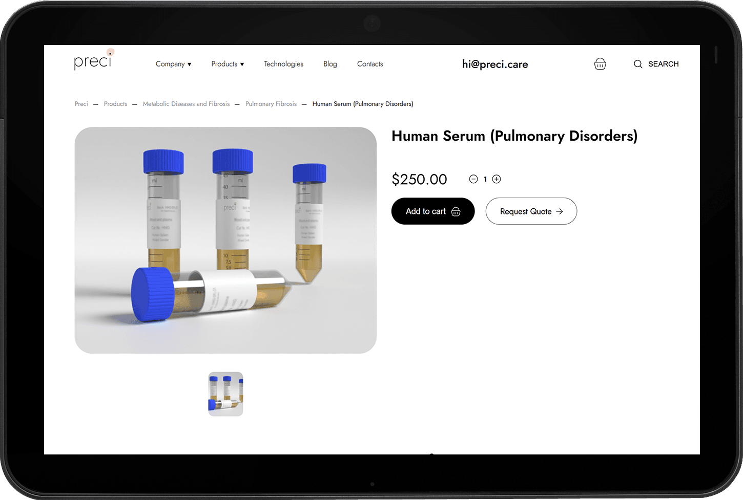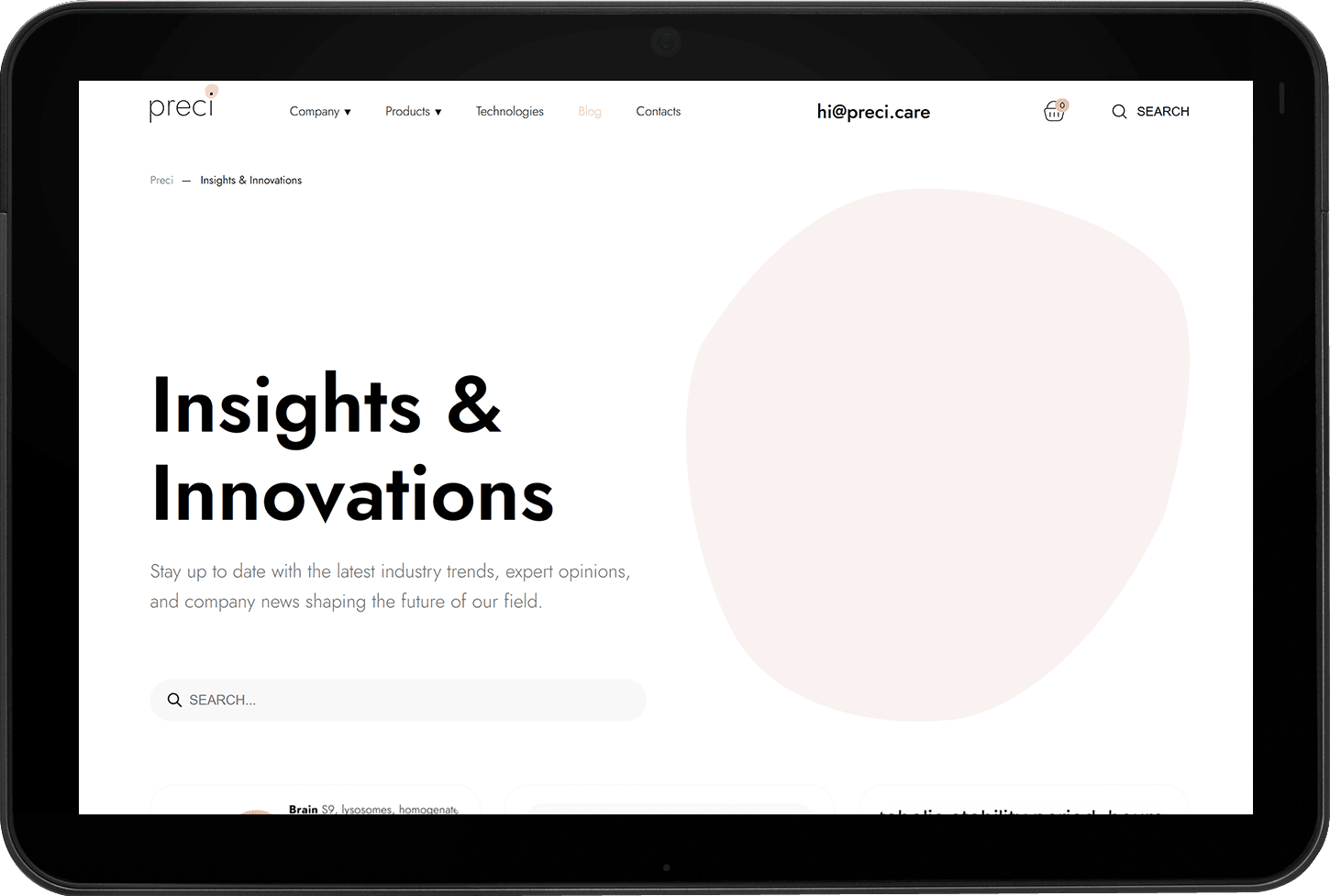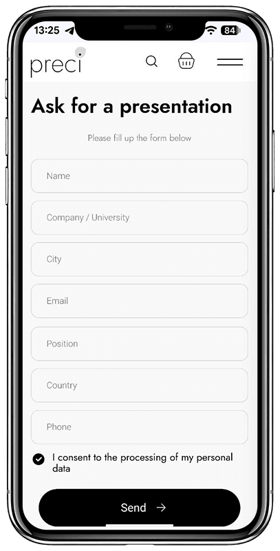 The client set the task to develop a corporate website and product catalog for the biotechnology company Preci, focusing on research products and laboratory solutions.